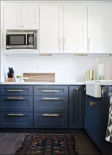 بیجا نیست اگر بگوییم در بیشتر طراحی های هدفمند کابینت ها در آشپزخانه ها از دو رنگ استفاده میشود چرا که در این حالت میتوانیم به زیبایی بصری فوق العاده و ترکیبی عالی برسیم. استفاده از دو رنگ در خانه بسیار آسان تر و ساده تر از آن چیزی است که فکر میکنید. تنها کاری که باید انجام دهید در نظر گرفتن تعدادی ایده است که مناسب وسایل آشپزخانه و کفپوش باشد.